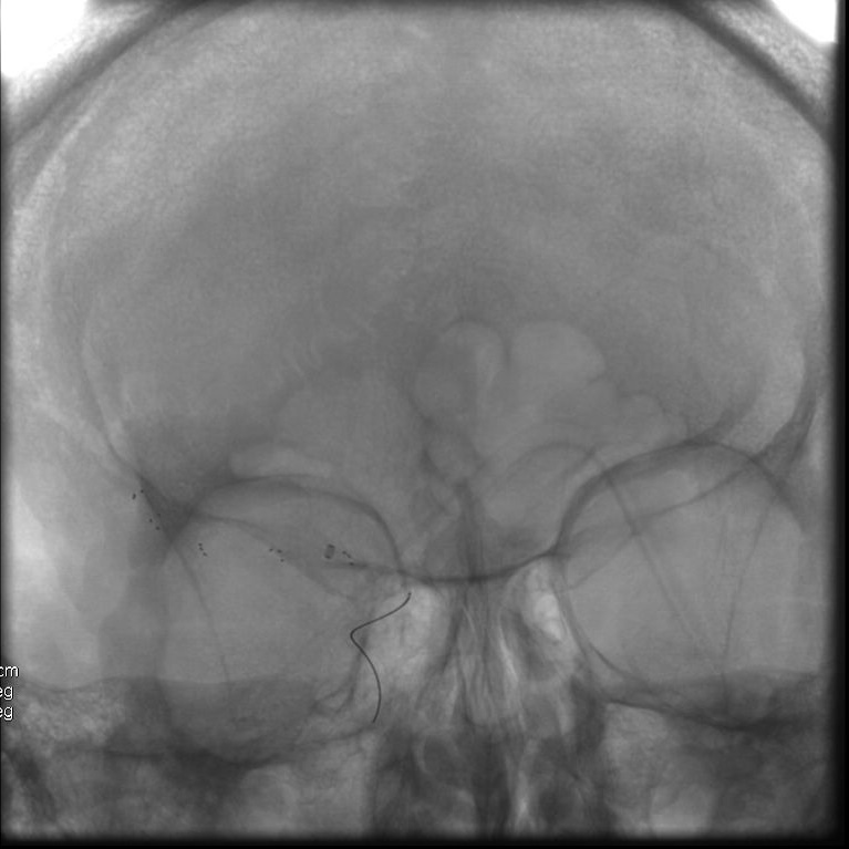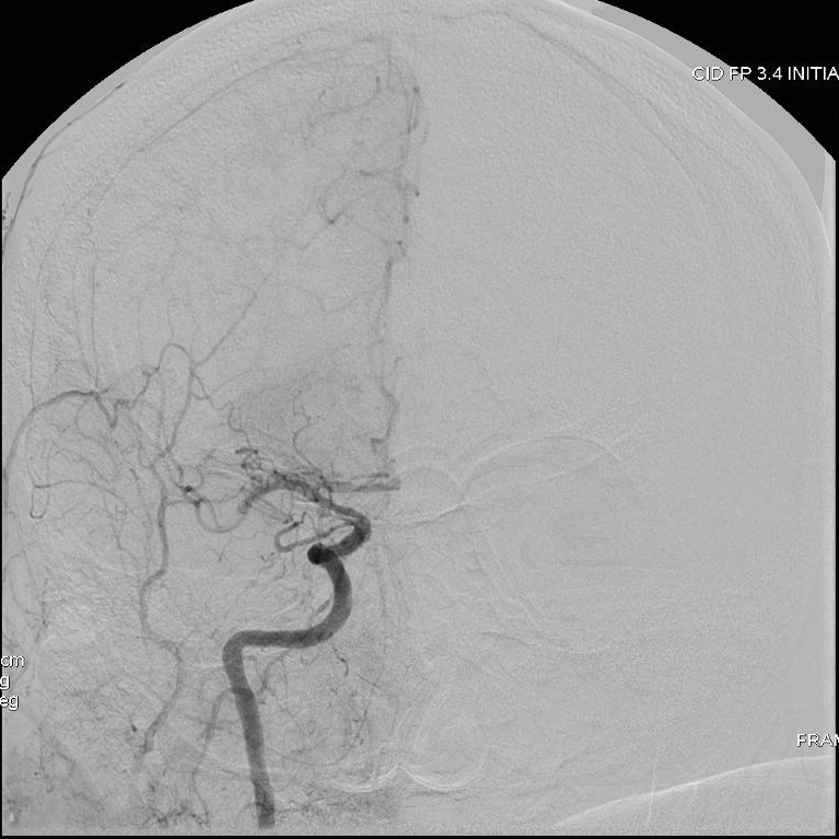 Patient présentant un AVC ischémique aigue droit en rapport avec une occlusion proximale de l’artère cérébrale moyenne. Thrombolyse intraveineuse puis thrombectomie par voie endovasculaire retrouvant cette occlusion proximale. Reperfusion rapide permettant de limiter l’extension de l’AVC ischémique et les séquelles neurologiques.